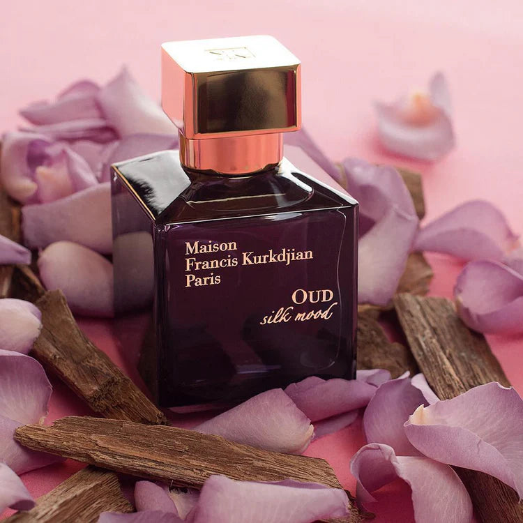 OUD silk mood Maison Francis Kurkdjian eau de parfum is a fascinating contrast much like a multicolored raw silk fabric: airy and steamy. Oud wood from Laos, a rare and precious material mingles with rose absolute from Bulgaria and bergamot from Calabria to come together in this floral.